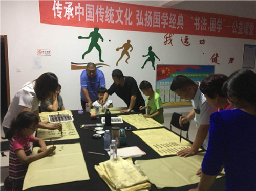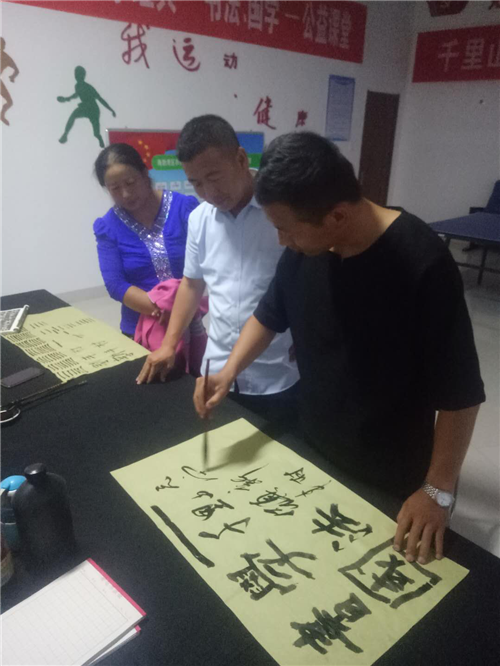 2018年7月1日,新丰村党支部在村书法室组织开展传统文化国学书法公益课堂活动,传播传统文化国学深入村民心中,让村民们了解传统文化的精神要爱国、爱党、爱村。